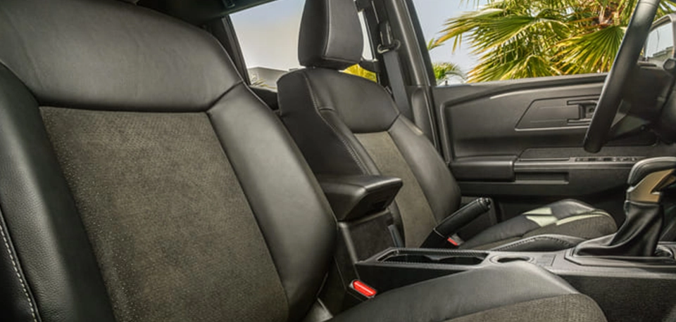 - Bancos com revestimento em suede perfurado e couro